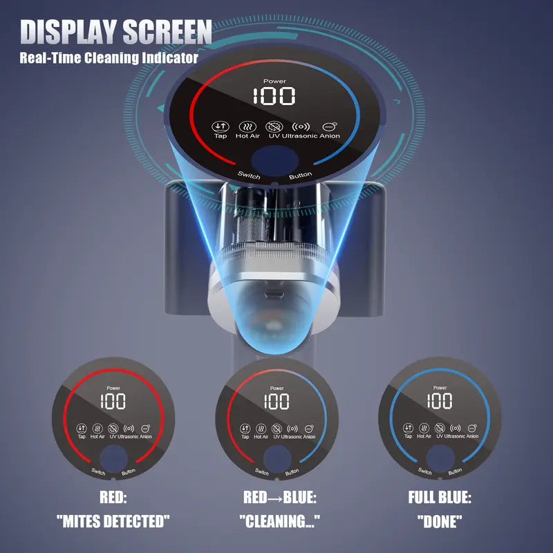 Real-Time Progress indicator: Smart color-changing display (RedBlue) shows cleaning status at a glance16,000Pa Suction Power: Ultra-strong 16,000Pa suction removes embedded mites, dust and allergens from deep within